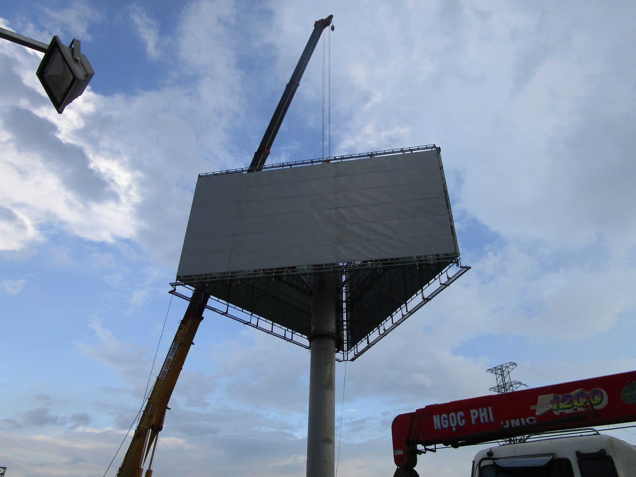Quy trình thi công trụ biển quảng cáo đòi hỏi sự chính xác cao và tuân thủ quy định của cơ quan chức năng để đảm bảo an toàn cho công nhân và công chúng.